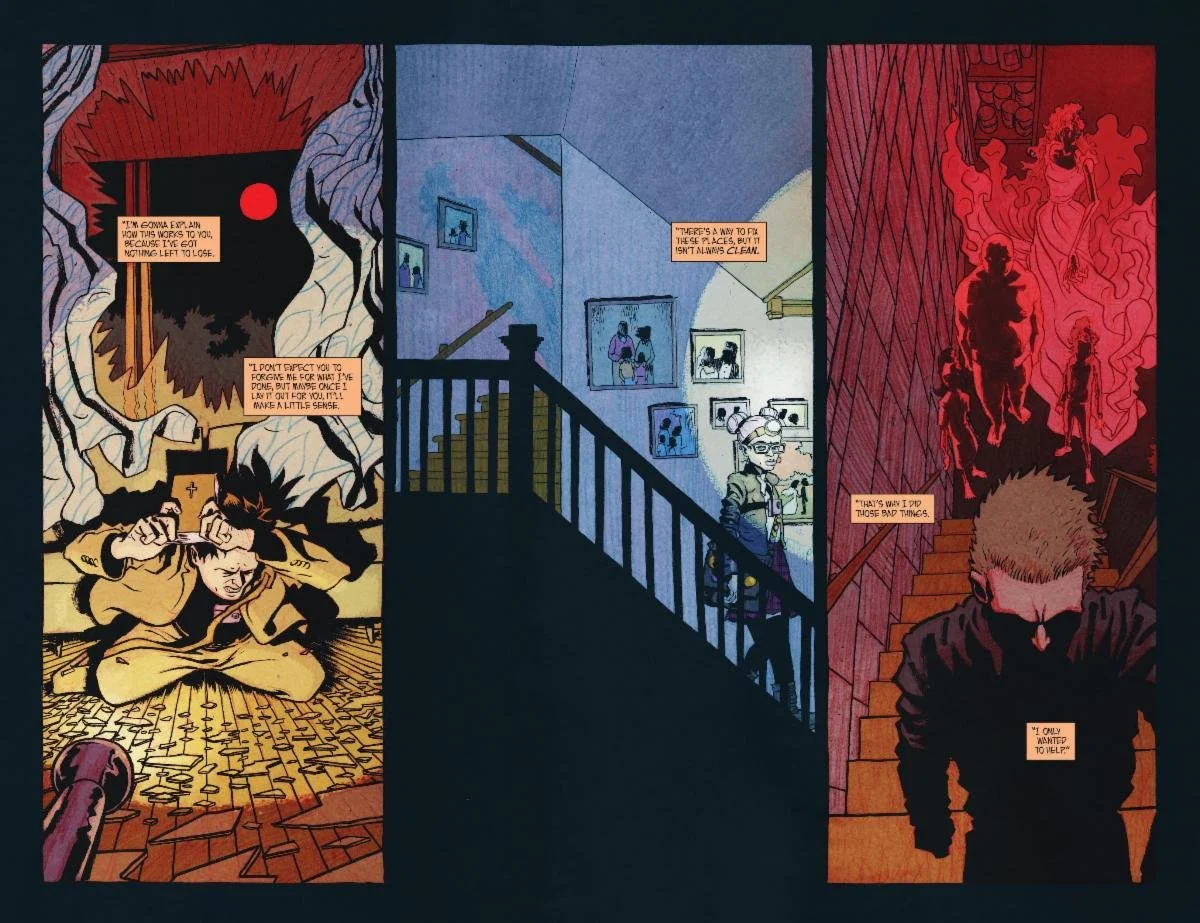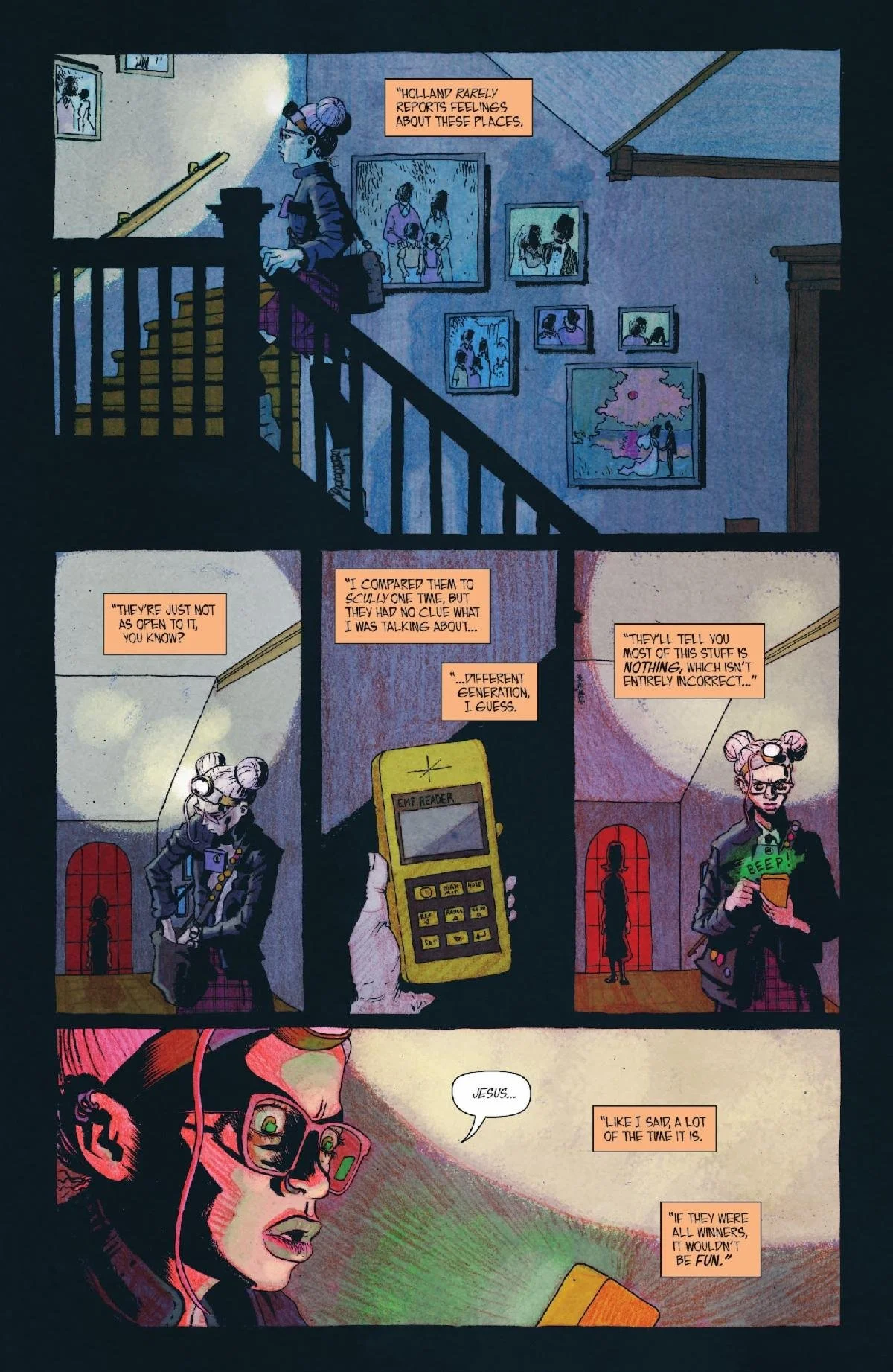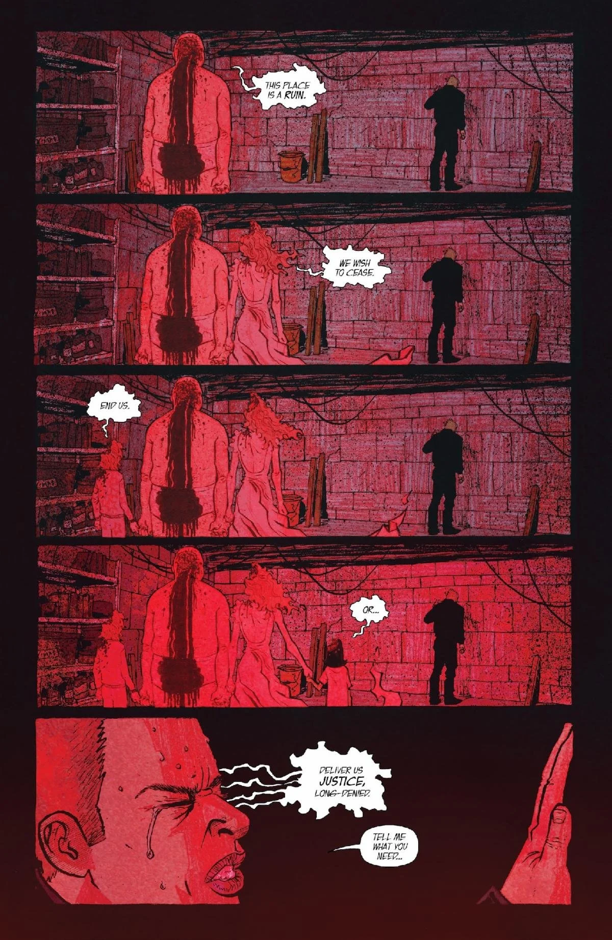 "One of my very favorite things about this series is that it has these rug-pull moments—you think you know what's going on, you think you know what it's about, and then the bottom falls out and the scope expands,” says Dave Chisholm. “There are moments of genuine surprise in this story, above and beyond that initial hook with these characters we think we know so well. I had such a blast working with Michael and Bess on this—it really was a collaboration of the highest order, artisanal, hand-made in an absolute frenzy, pored over by people who really really care about giving you something that will keep you up at night, that will drill a hole into the back of your mind and set up some kind of unholy bunker in there."