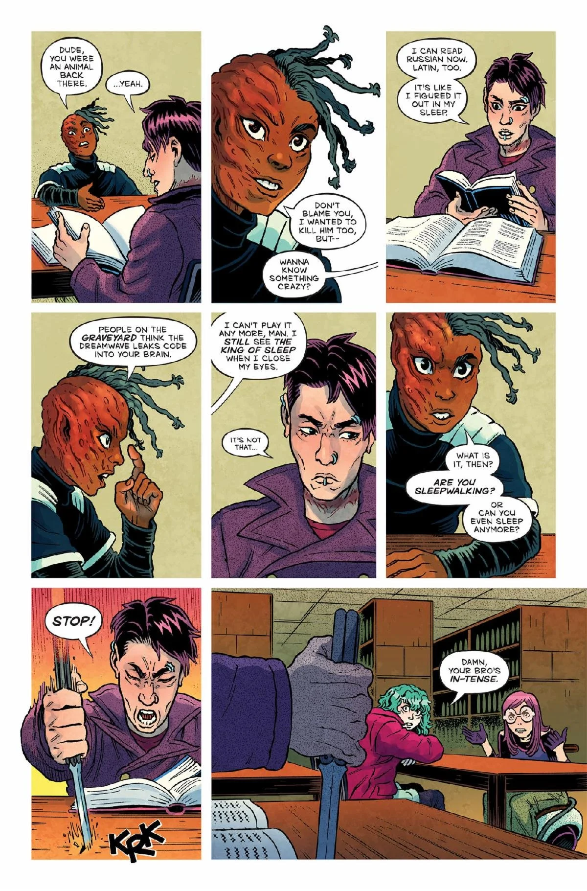 PORTLAND, OR (July 3, 2025) BEING ONLINE PUTS YOUR LIFE ON THE LINE!– Oni Press, the multiple Eisner and Harvey Award-winning publisher of groundbreaking comics and graphic novels since 1997, is proud to present the first look inside CEMETERY KIDS RUN RABID #1 – an all-new jumping point for the serotonin-splattered video game horror hit from Zac Thompson (Into the Unbeing – Parts 1 & 2) and Daniel Irizarri (EC’s Cruel Universe, Judge Dredd) that began with CEMETERY KIDS DON’T DIE! On August 13th, sit back, relax, and surrender your mortal consciousness to the CPU of the Dreamwave – the world’s first video game system played exclusively in your sleep – even though its players sometimes don’t wake up…