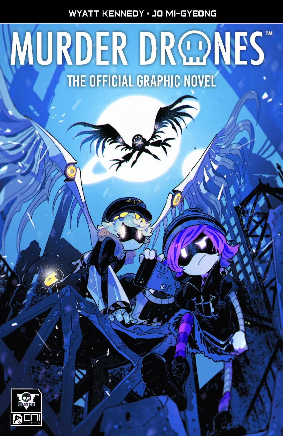 PORTLAND, OR (September 8, 2025) – Pioneering independent animation powerhouse Glitch Productions and groundbreaking publisher Oni Press are today launching a Kickstarter campaign for MURDER DRONES: THE OFFICIAL GRAPHIC NOVEL, an adaptation of MURDER DRONES creator Liam Vickers’ haunting and hilarious adult animated series. Glitch's wildly popular, Webby Awards-winning series has generated more than 330 million views since it first debuted in 2021. Now acclaimed comics writer Wyatt Kennedy (Nights, Marvel United) and superstar artist Jo Mi-Gyeong (Eve, Dark Crystal: Age of Resistance) are adapting those visionary eight episodes for Glitch’s first-ever English-language comics collaboration: an all-new, can’t-miss 136-page hardcover graphic novel from Oni Press, with a Kickstarter-exclusive hardcover featuring cover art by artist Alessio Zonno (I Heart Skullcrusher) and a Kickstarter-exclusive paperback edition featuring cover art by series artist Jo Mi-Gyeong.