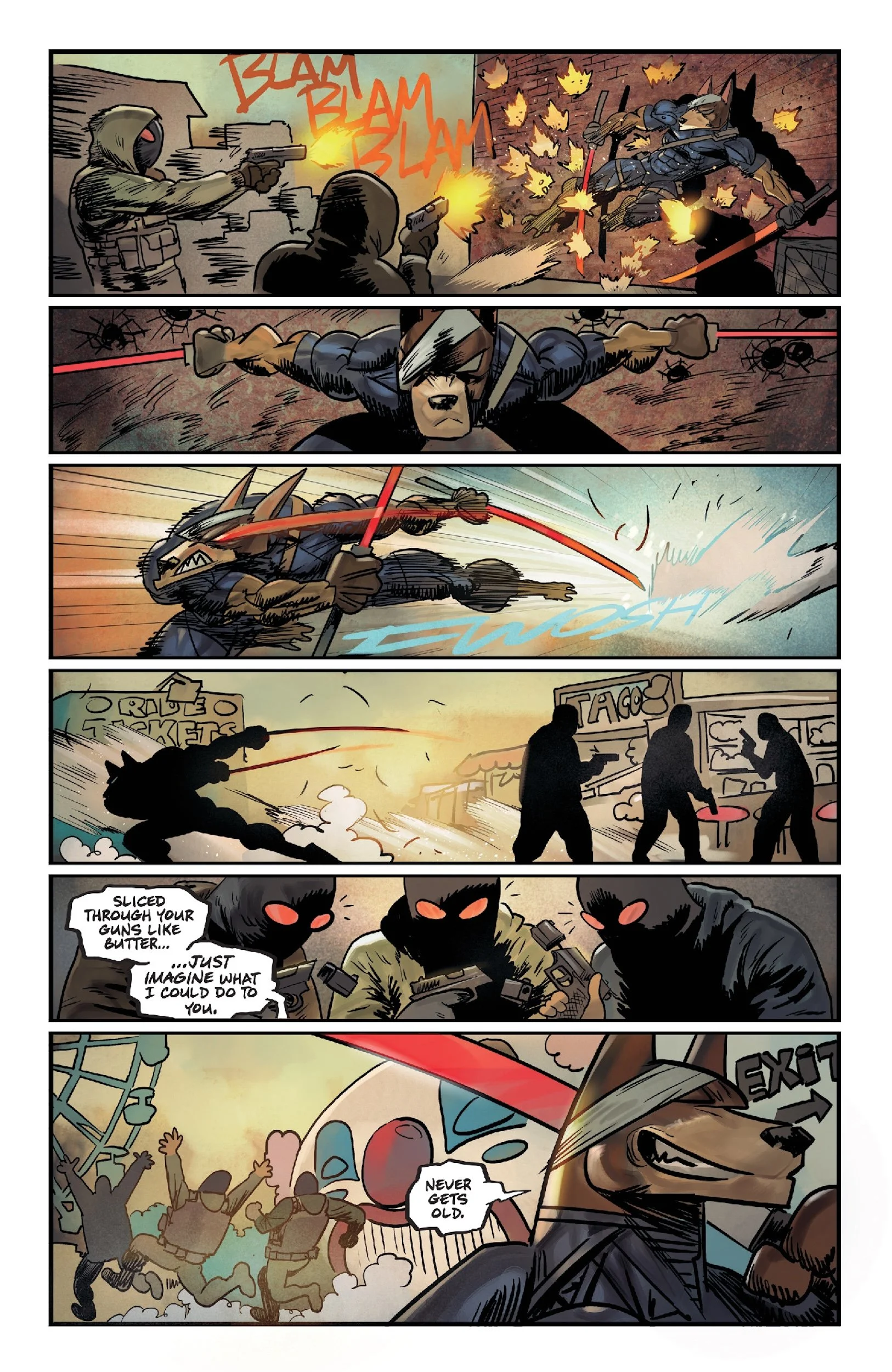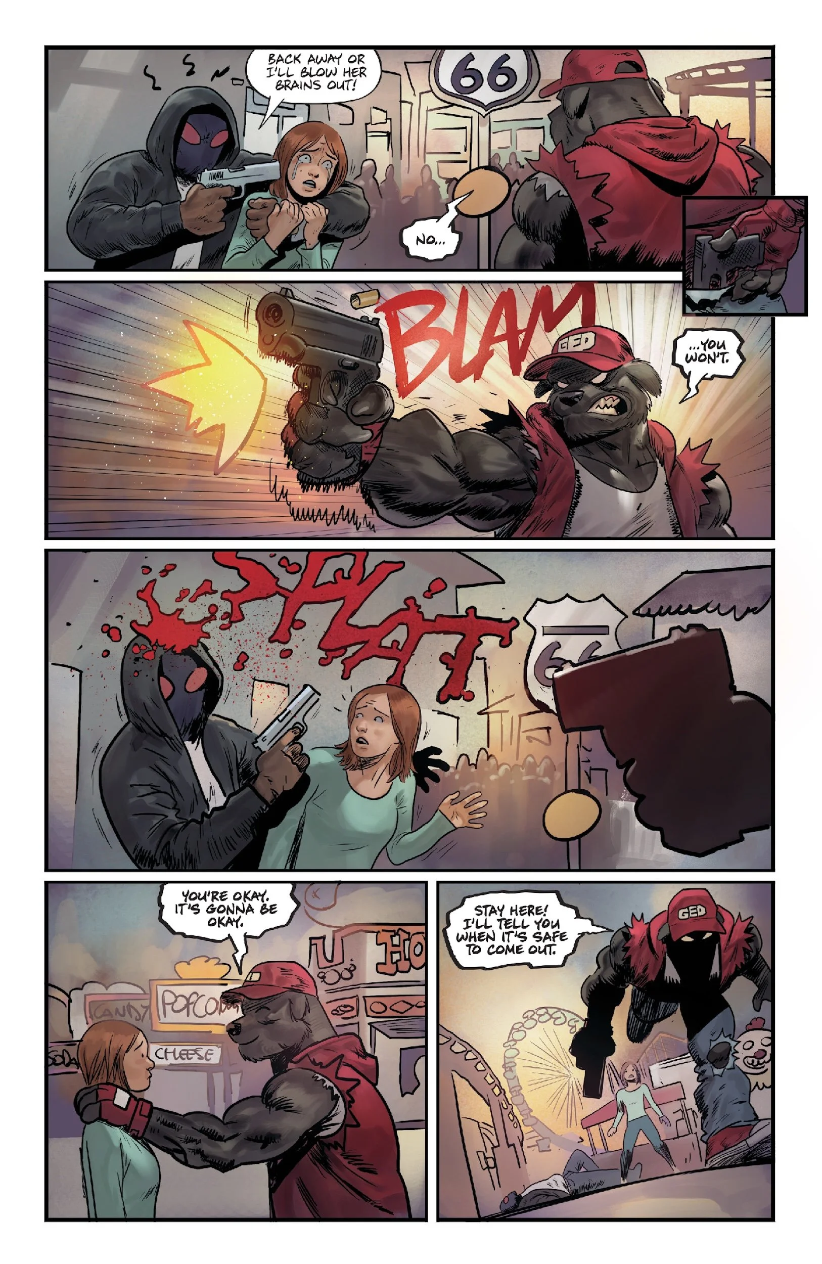 THIS SUMMER … START $#!&, GET BIT! Oni Press – the multiple Eisner and Harvey Award-winning publisher of groundbreaking comics and graphic novels since 1997 – is proud to share the first lettered look inside SUPER MONDO MEGA MUTTS #1 (of 4), the blockbuster new series from powerhouse co-creators of Lost Fantasy, Curt Pires (Lost Fantasy, Fireborn) and Juan Gedeon (DC: The Jurassic League)! Kicking off with a colossally double-sized, 40-page milestone packed with first appearances, fur and fury this July, get ready as the 21st Century’s most raucously radical new team of anthropomorphic anti-heroes spring into action as they battle to save Los Angeles … and all of humanity!
